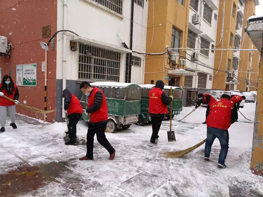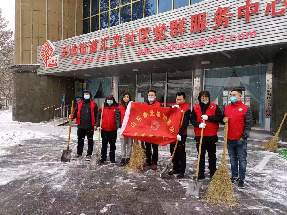 12月29日,寿光市突降大雪,雪景美化了城市,但也给出行带来了不便。为确保交通安全,方便居民出行,检测集团组织党员志愿者到汇文社区清华名园开展清雪志愿服务活动。
